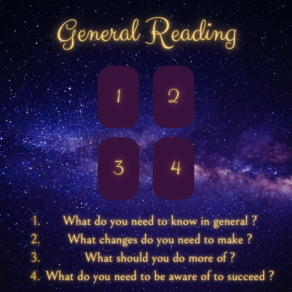 General readings are for when you don’t have any specific questions and just want to see what Spirit and your ancestors think is most beneficial for you at this time.