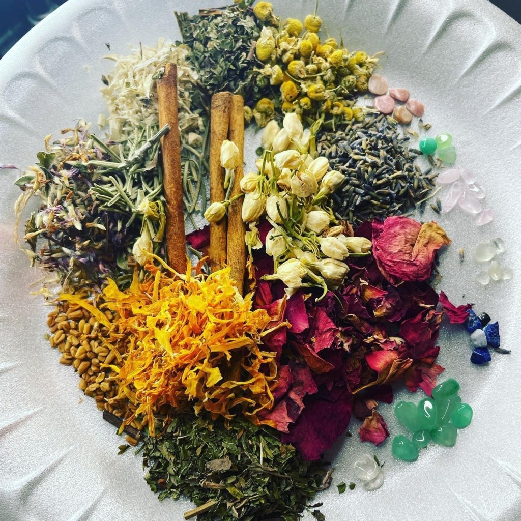 I blend these to give you a renewed vigor for life, dragging you out of the slumps and infusing you with unconditional love so you can both spread and attract it more easily. It also attracts abundance (monetary and non monetary) and adventure ! These charmed babes inspire you to be a free spirit and go for what you want. I been in here singing Spice Up Your Life to it (iykyk). I did my best to embody the best parts of my bestest friend and even left it on my altar for her and the planet Venus to charge it for me.