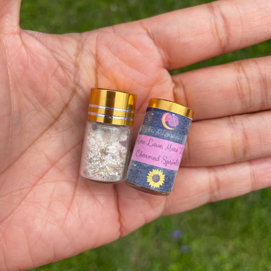 These Charmed Jars stay Charmed for 33 days. They come in tiny glass jars so that you can throw them in your purse or pocket, comfortable sleep with them under your pillow or if you’re like me, keep them in your bra !